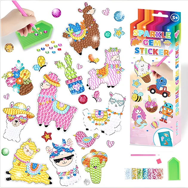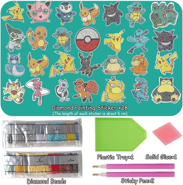 Набір 28 дитячих стікерівdiamond painting — 5D наклейки з кристалами + інструменти (аніме/мультфільми)