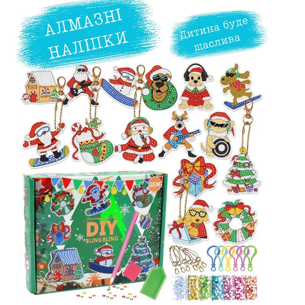 Новорічна алмазна мозаїка. Алмазна вишивка наклейки стікери