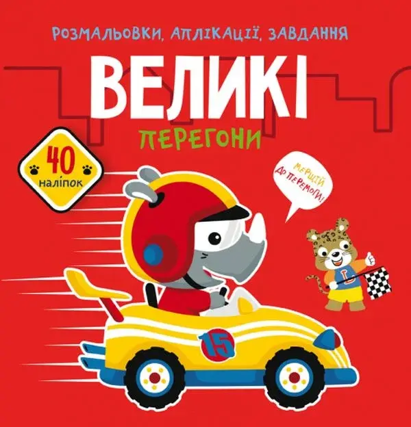 Розмальовки, аплікації, завдання. Великі перегони. 40 наліпок