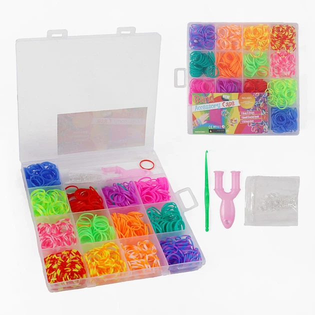 Набір резиночок для плетіння C 74653 13 кольорів, пластикова фурнітура, рогатка, гачок, в боксі