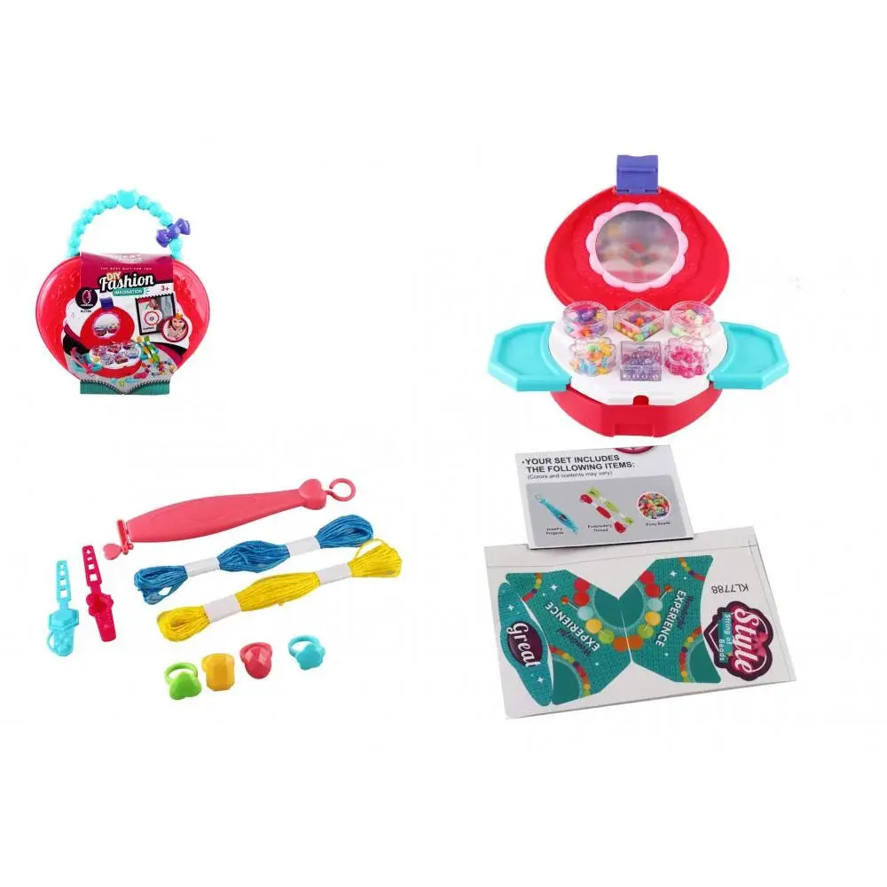 Набір для плетіння, нитки, 2 заколки, 2 кільця, 6 наборів бусин, наліпки, станок, дзеркало