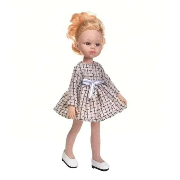Лялька в ошатній сукні, 35 см, з чарівними веснянками виразними очима у картатій сукні