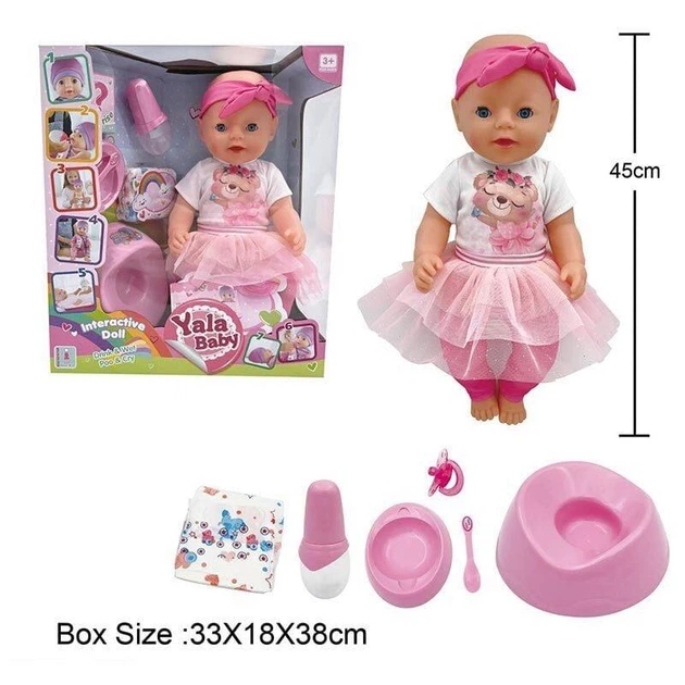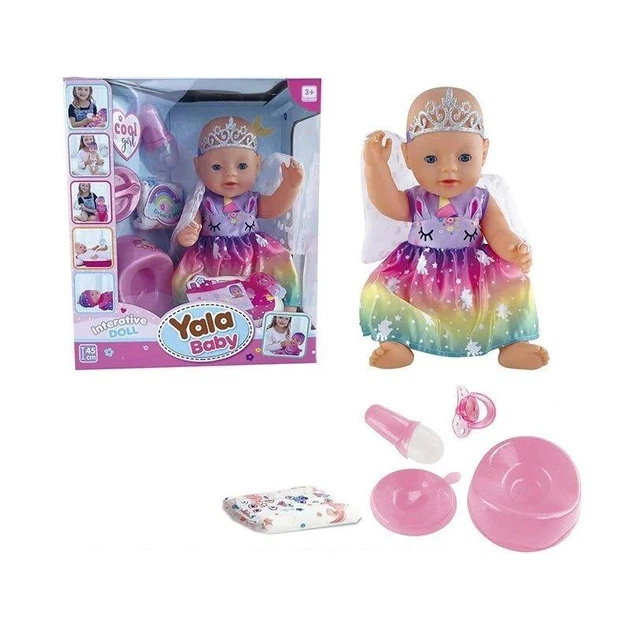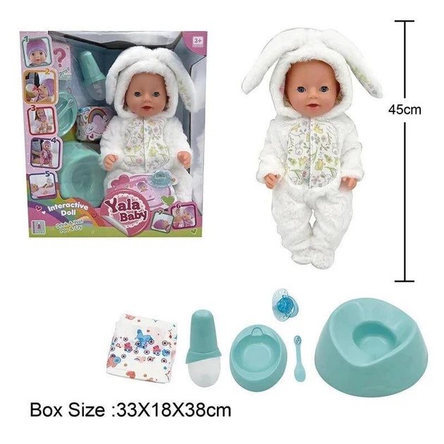 Пупс Лялька функціональна зріст 45 см заплющує очі п’є з пляшечки підгузок горщик посуд пустушка Yale Baby BL 242 H