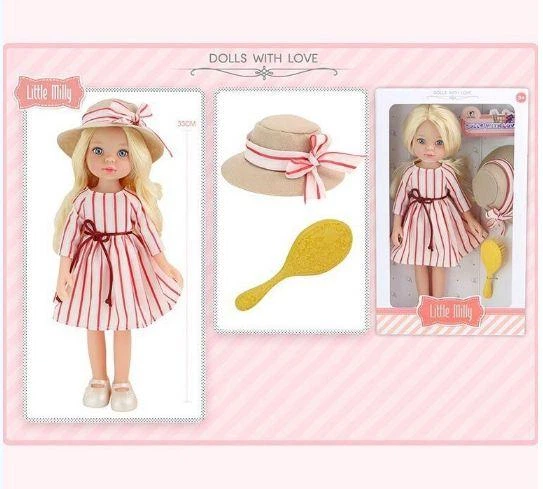 Лялька в капелюшку 91099 E висота 33 см, капелюшок, щітка для волосся, в коробці