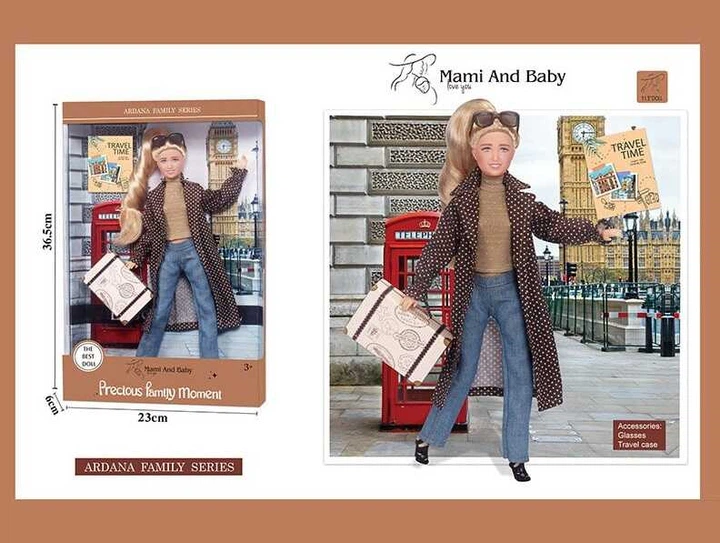 Кукла A 791-3, висота 30 см, шарнірні суглоби, окуляри, взуття, в коробці