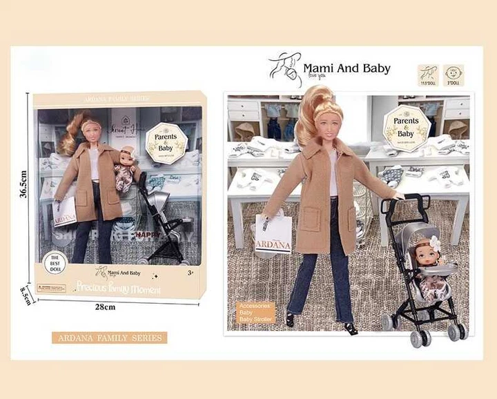 Лялька A 787-3 тато з донечкою, візочок, ноутбук, чашка, висота 30 см, в коробці.
