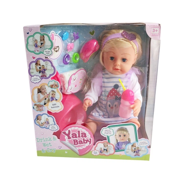 Пупс 40 см Yala Baby з рожевим горщиком та пляшечкою, функціональний, п’є воду, закриває очі