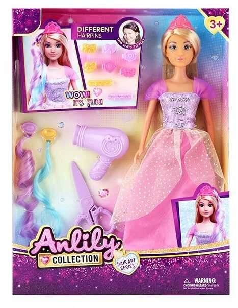 Кукла 616830 висота 30 см, шарнірні кінцівки, щітка для волосся, зеркальце, корона, ожерелья, знімний одяг та взуття, в коро