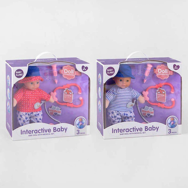 Пупс 1861-9/10 2 види, м'якотілий, каже мама-тато, видає звуки, плаче, сміється, 35 см, 3 аксесуари, функціональний стетоско