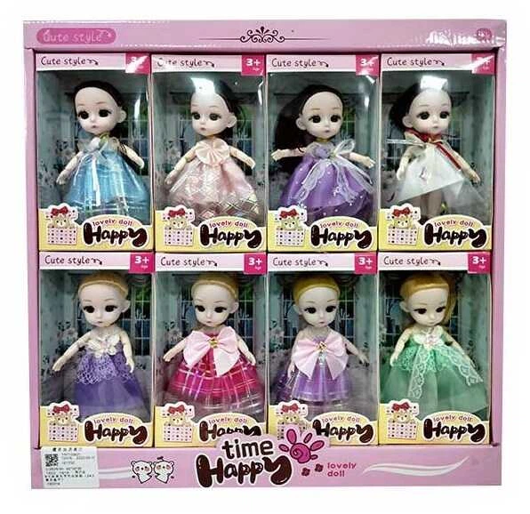 Кукла 1910 Q1 ЦІНА ЗА 8 ШТУК У БЛОЦІ, 15 см, імітація скляних очей, шарнірні суглоби, в коробці
