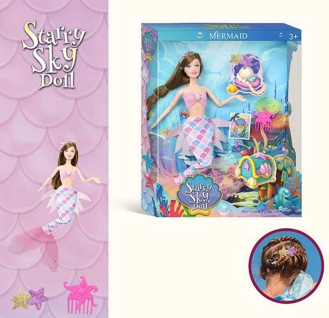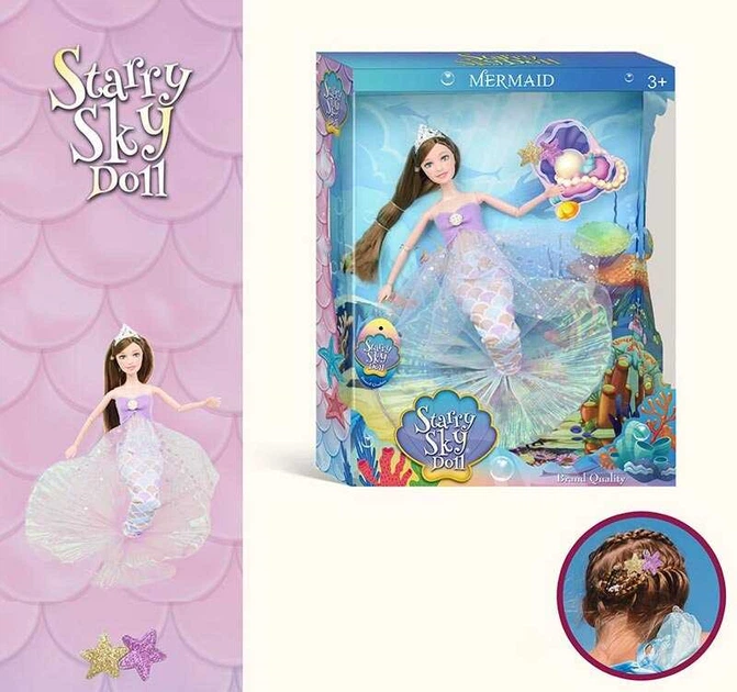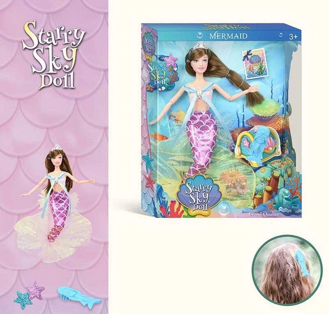 Кукла SK 050 A "Русалка", висота 30 см, знімне взуття, гребінець, шпилька, аксесуар, в коробці