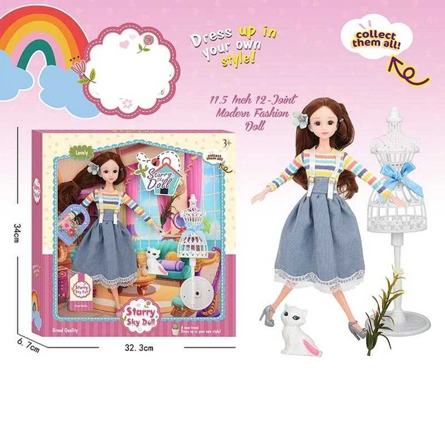 Кукла SK 024 висота 30 см, манекен, котик, квітка, в коробці
