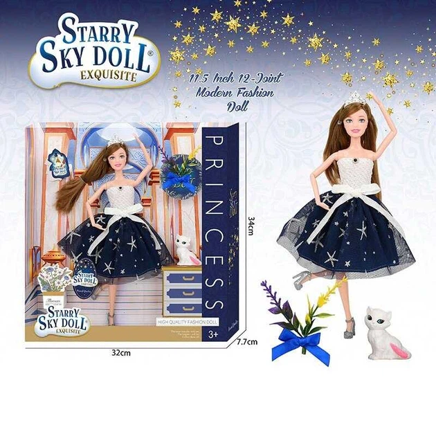 Кукла SK 025 B висота 30 см, діадема, квіти, улюбленець, сумочка, в коробці