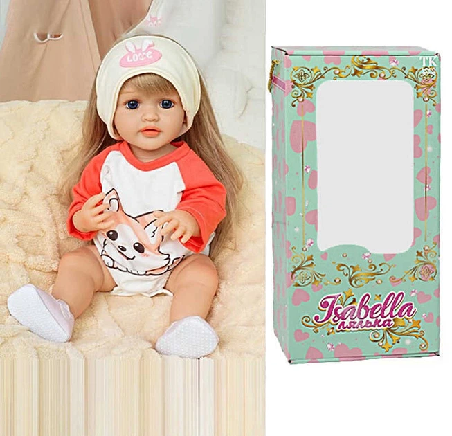 Кукла QM 24119 "TK Group", висота: 50 см, гумова, імітація скляних очей, пустушка, пляшечка, памперс, шапочка, взуття, в кор