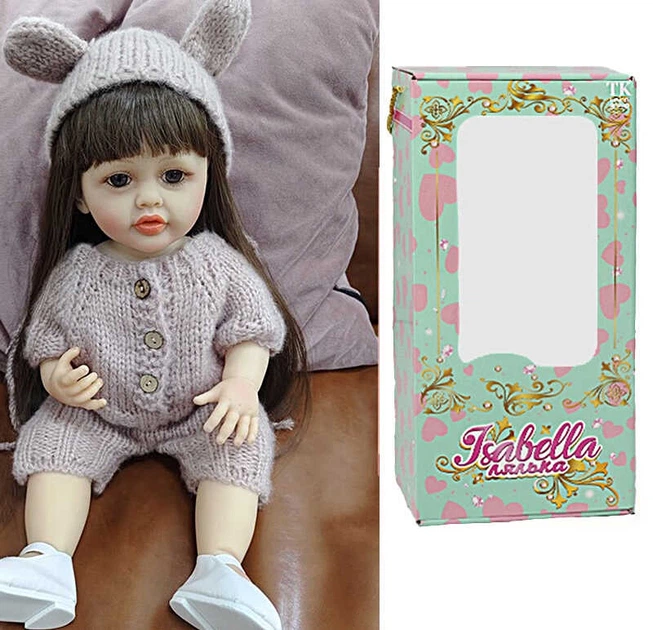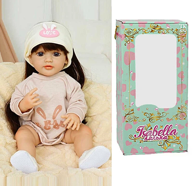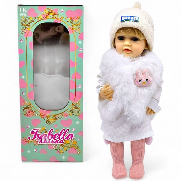 Кукла QM 24118 "TK Group", висота: 50 см, гумова, імітація скляних очей, пустушка, пляшечка, памперс, шляпка, носки, в короб
