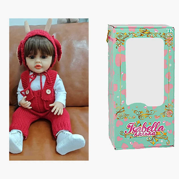 Кукла QM 24112 "TK Group", висота: 50 см, гумова, імітація скляних очей, пустушка, пляшечка, памперс, взуття, шляпка, в коро