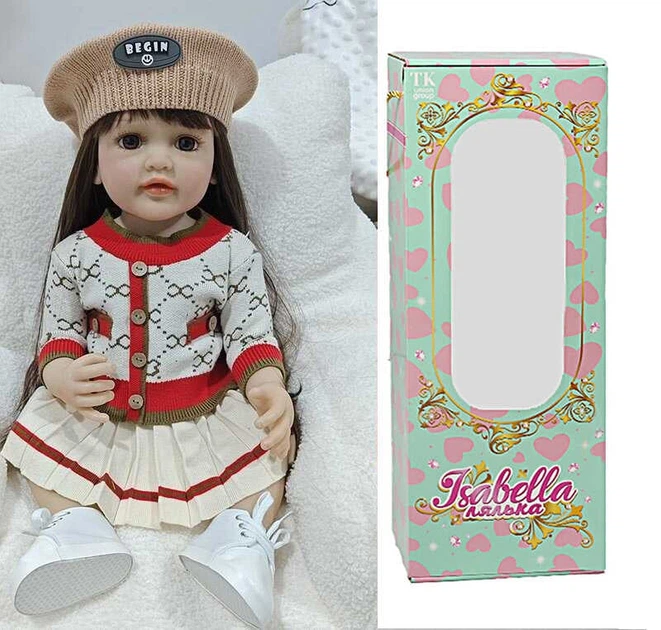 Кукла QM 24121 "TK Group", висота: 50 см, гумова, імітація скляних очей, пустушка, пляшечка, памперс, шляпка, взуття, в коро