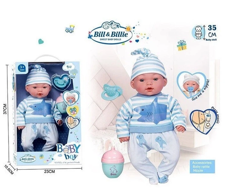 Пупс м’якотілий 201-1 зі знімним одягом, 35 см, у коробці