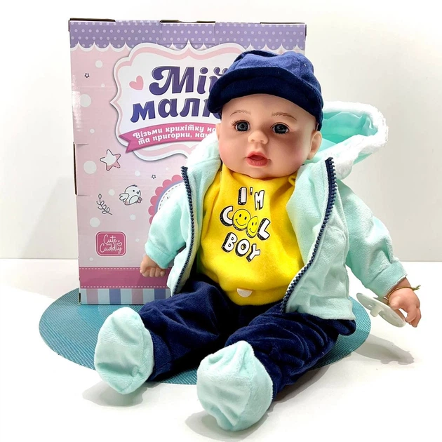 Лялька-пупс м'яконабивна з соскою та звуковими ефектами укр мова 44см Вид 1 (M 5924 І UA)