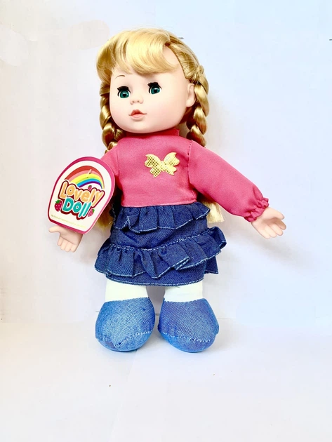 Лялька LY3001-2-3-4 м'яконабивна музика батарейки (таб) у рожевій кофті синя спідниця
