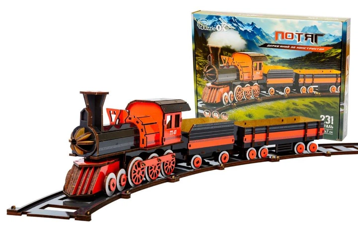 Дерев'яний конструктор PuzzleOK Потяг 600*130*70 мм, 231 деталь