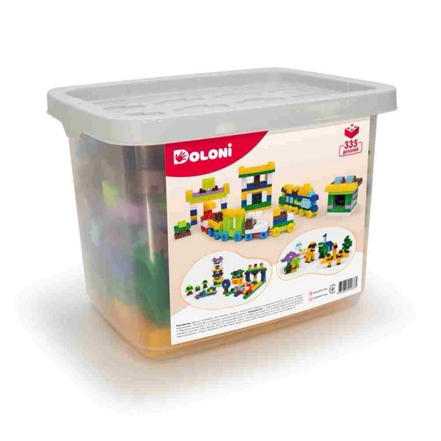Конструктор "Паркінг/Трек/Залізниця/Динозаври" 335 деталей у контейнері для зберігання Фламінго 013999/01