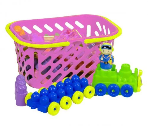 Конструктор з поїздом, 43 дет (в рожевій кошику)