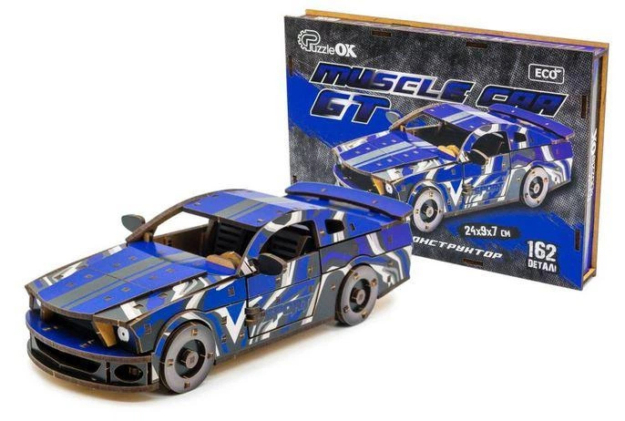 Дерев'яний 3D конструктор машина "Muscle Car" 162 дет., синя (Puz-00642)