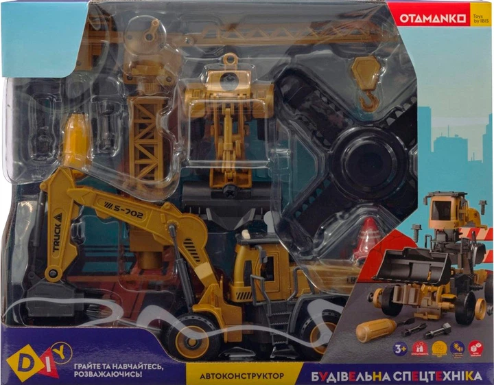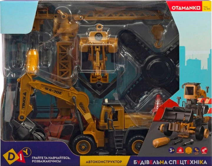 Машинка-конструктор OTAMANKO Будівельна спецтехніка 2 в 1 Трактор із грейдером + Навантажувач із грейфером для металу 74 дет