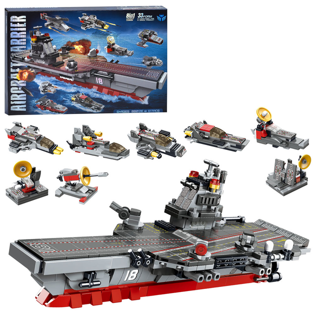Конструктор дитячий "Військовий транспорт" 8в1, авіаносець 22,4 см, 617 деталей BB012E