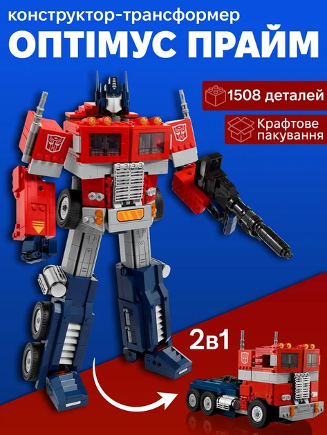 Конструктор трансформер Оптімус Прайм, 1508 деталей, 2в1, вантажівка, Optimus Prime, 10302, крафтове пакування
