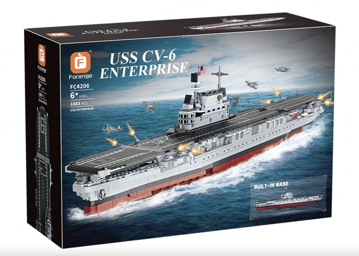 Конструктор Forange Авіаносець USS Enterprise CV-6 — 1883 деталей, військовий корабель, великий набір 6+