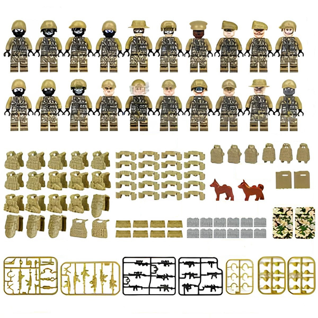 Військовий конструкторний набір з 20 фігурками + зброя + контейнер, спецназ, SWAT, альфа КОРД