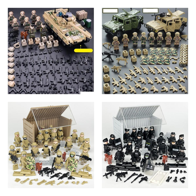 Військовий конструктор 2 броньовика конструктор чорний та зелений для фігурок спецназ військовослужбовців