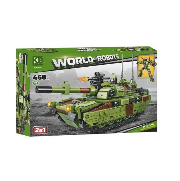 Конструктор KB 3000 військова техніка, 2в1 (танк,робот), 468детали, в коробці.