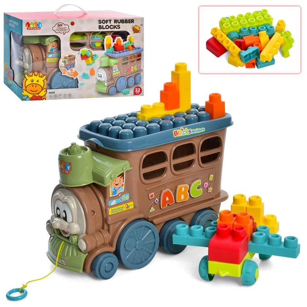 Конструктор JDLT 6060, потяг-каталка, м'які блоки, 22 деталі, коробка 39,5-25,5-17,5 см.