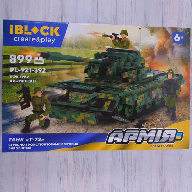Конструктор iBlock Військовий танк T-72 з 899 деталей Бойовий набір Армія Іграшка для дітей