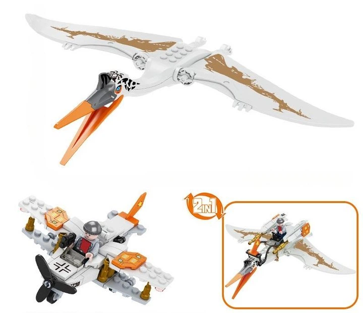 Дитячий конструктор Динозавр Птеродактиль 2 в 1 з літаком та мініфігуркою 3730-6 162 деталей Білий