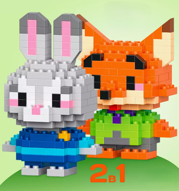 Конструктор 3D фігурки з м/ф Зоотрополіс Ліс Нік 147 деталей та Зайчиха Джуді 164 деталі міні блоки, 2 конструктори (SVS)
