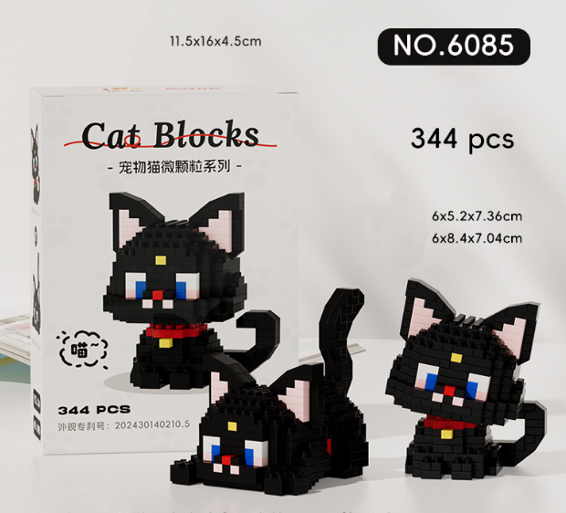 Конструктор 3D фігурка Котик "Марсік" чорний кіт у 2-х позах міні блоки Cat bloks 344 деталі (SVS)