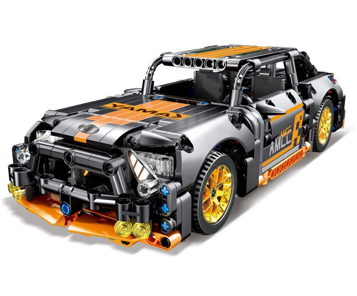 Конструктор машина спортивна велика жовта перегонова красива 520 деталей із гумовими колесами