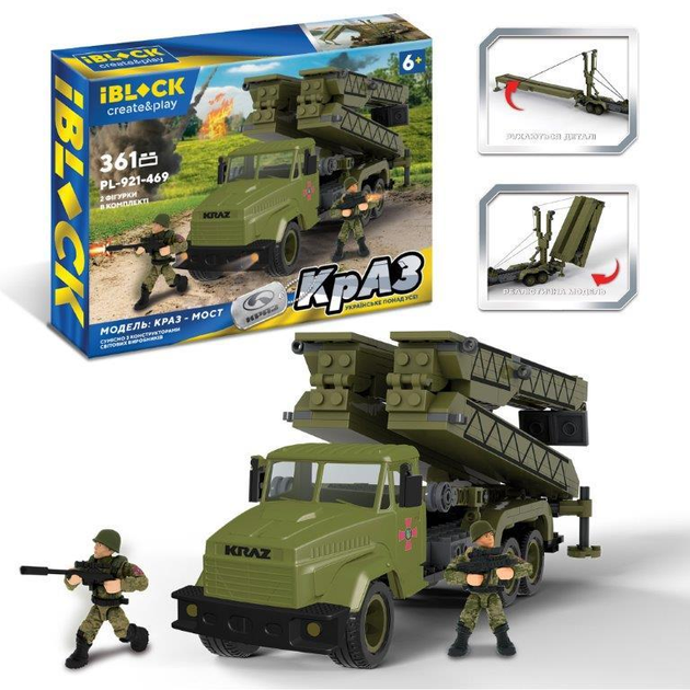 Конструктор пластиковий Краз Механізований міст ЗСУ Армія 361 деталей iBlock 37,5*26*6 см