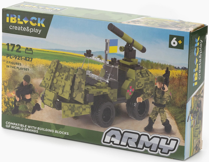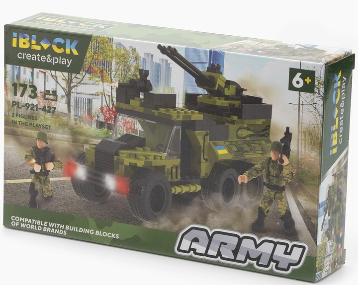 Конструктор пластиковий Броньована машина Тигр ППО проти Шахедів 173 деталей iBlock 23х4,5х14 см