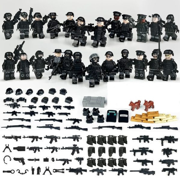 Конструктор 24 фігурки спецназу, ЗСУ, поліція + зброя та екіпірування, ігровий військовий набір
