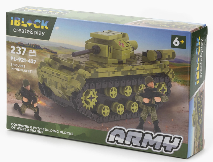 Конструктор пластиковий Армія техніки Сухопутних військ Танк Т-34 237 деталей iBlock 23х4, 5х14 см