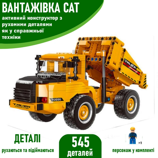 Конструктор Вантажівка-Самоскид (545 деталей) з фігуркою будівельника Technic та рухомим прицепом