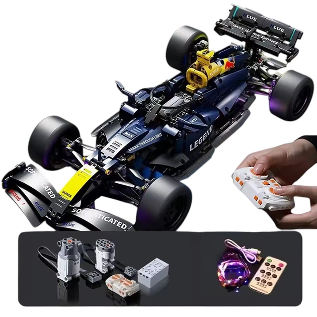 Конструктор JZH-050 Formula F1 1:10 з електромоторами, радіокеруванням та підсвіткою 1200 деталей Формула Ф1 синя