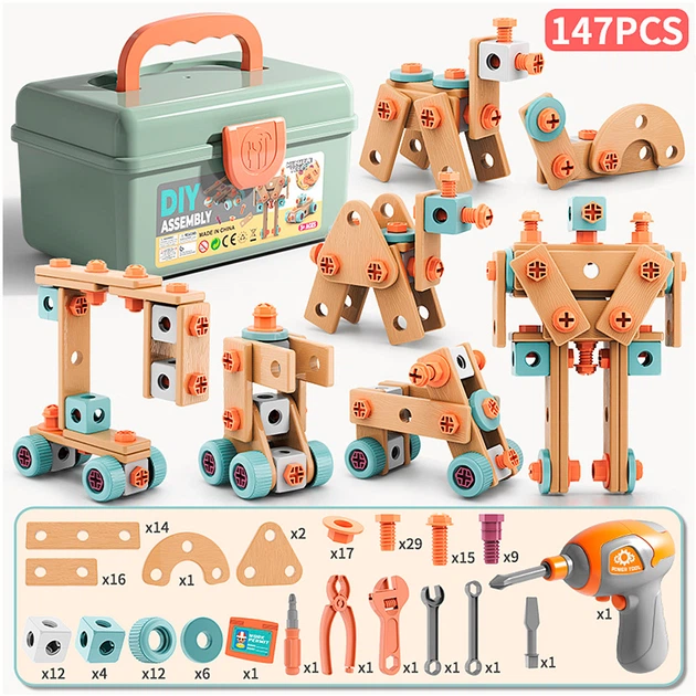 Дитячий конструктор BauTech DIY юний технік із шуруповертом на 147 деталей Зелений (1016-097-00)