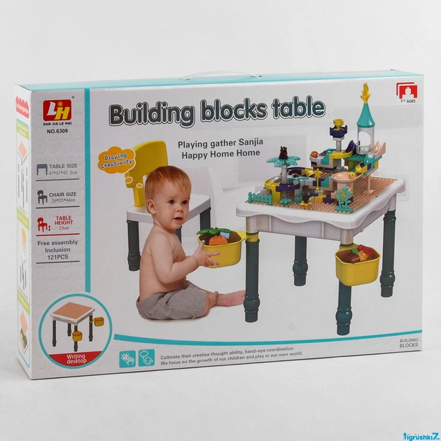 Ігровий столик 6309 (6) 6в1, стільчик, конструктор, 121 деталь, в коробці