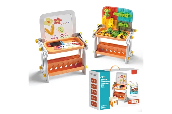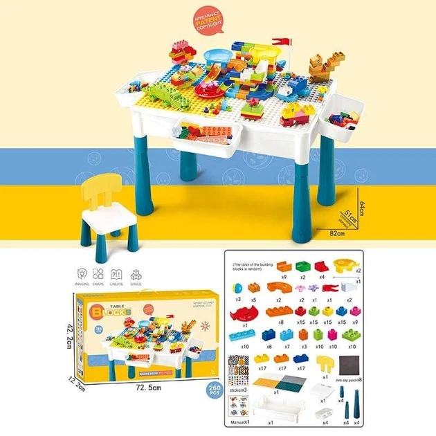 Дитячий стіл 4в1 B8020 / магнітна дошка для малювання, конструктор з блоків, стіл